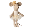 A little sister mouse dressed up like a graceful ballerina. She wears a beautiful off white colored tutu and a beautiful headband - ready for hours of dance.