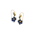 The Blue Violet Wire Earrings are cast in hand-patinated bronze with deep blue cast glass flowers. The wires are 925 silver.