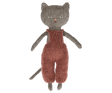 This kitten fits perfectly into a small hand so they are easy to bring on the go. Your kitten friend comes in a soft knitted pair of overalls.