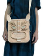 The Medium Tan Tecuan Jaguar Bag is inspired by Tecuan masks. These handmade and hand-painted masks that are worn during "the dance of the Tecuanes," one of the most popular dances in the Nahua culture of Guerrero. The dance symbolizes the combat between human beings and the forces of nature.