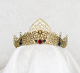 The Rhinestone Crown is an exclusive collaboration between Gift at the Gardner and Loschy Designs. The intricate gold crown's designs are inspired by the masterpieces at the center of the Gardner's special exhibition Metal of Honor: Gold from Simone Martini to Contemporary Art. Each hand-crafted crown features brass filigree stampings hand-sewn to crown base and painted metallic gold.