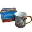 This elegant mug features Titian's interpretation of Europa, one of Jupiter's great loves, shortly after she initially meets the god disguised as a beautiful white bull. Written in gold on the mug's inside is an excerpt from a letter written by Isabella Stewart Gardner to her art advisor, Bernard Berenson, after he had secured the masterpiece for her; it reads "When comes Europa? I am feverish about it." The cup's elegant gold handle pays tribute to the painting's beautiful gold frame.