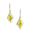 The Yellow Poppies Diamond Earrings feature beautifully preserved Poppy flowers in diamond-shaped charms, suspended in eco-resin. The earring charms dangle from gold-plated ear hooks.