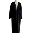 Dramatic long wool cape with hand cut and stitched leather detailing on the shoulders. Comes with a removable matching tie belt of the same fabric to wear either open or cinched. This cape stuns on both tall and petite frames. Its open design ensures a perfect fit on a range of body types.