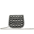Expertly hand-embroidered by third generation zardozi artisans, the Black Velvet Saddle Purse features a silver geometric designs on luxurious black velvet. Each facet of the pattern is meticulously outlined in sparkly metallic thread and embellished with pearls and clear glass beads to create an opulent dazzling 3D effect. The saddle bag has a flap-over magnetic closure and two interior slit pockets.