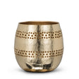 The Large Barrel Hurricane brings a touch of bling – as well as warmth and ambience – to almost any setting. Made of aluminum, this striking gold-plated hurricane shimmers with distinctive texture, while the perforated patterns allow candle light to escape in unique and captivating ways.