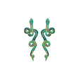 These sweet snakes are carefully cut and hammered by hand out of thin brass sheet (and as a result are feather-light on the lobes). After a base layer of natural verdigris patina, they are hand-painted with washes of pigment and metallic gold detail, ensuring no two will ever be exactly alike.