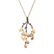The Golden Autumn Pendant Necklace is cast in bronze with a trio of finishes, including 24kt gold plating, antique bronze with copper, and gunmetal patina.