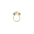 The Lily of the Valley Double Flower Ring is cast in sterling silver with a 24K matte gold finish and accented with cast glass flowers, each filled with a white freshwater pearl.