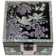 Discover the elegance of Korean craftsmanship with this exquisite mother-of-pearl jewelry box. Throughout Asia, the crane is a symbol of happiness and eternal youth. The intricate mother-of-pearl design featuring birds and florals against a deep black background radiates sophistication. With a plush red velvet interior, it safeguards your precious jewels with style. A unique masterpiece, it's perfect for personal indulgence or as a cherished gift.