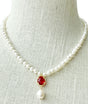 Pearl & Red Crystal Drop Necklace
