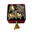 The opulent and regal velvet Box features elaborate embroidery with metallic threads. It is embellished with semi-precious stones and an elegant metallic tassel. The Box is lined with sateen Use this Gardner-style Box as a keepsake box, treasure box, bedside table box, or entry way decoration.