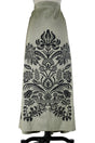 The skirt is made of a beautiful pistachio silk and features a complimenting black screen design evocative of the Raphael Room. Pair this statement skirt with one of Barbata's tassel necklaces for a stunning outfit!