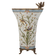 This stately vase features bronze dragonflies and a hand-painted bird motif.