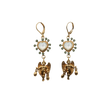 The Angel Heart Earrings are a poetic blend of symbolism and artisanal craftsmanship. Each earring features a heart-shaped design adorned with green enamel and mother-of-pearl semi-precious stones, creating a harmonious contrast of color and texture. These earrings serve as modern talismans, embodying themes of protection and serenity. Their timeless design and meaningful symbolism make them a cherished addition to any jewelry collection.