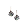 These vintage-style earrings feature cool aqua crystals and intricate filigree detailing reminiscent of elegant peacock feathers. The Aqua Crystal Filigree Earrings are designed with a secure and comfortable French lever back wire closure for effortless wear.
