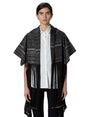 Measures 15.5" shoulder to shoulder; 11.75" sleeve to shoulder; 21.5" neck to hem with 19.5" fringe