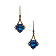Deep Bermuda Blue Crystals are set in a vintage-style frame and suspended from French lever-back ear wires. These stunning cushion-cut crystals showcase a rich blue hue that shifts to a vibrant deep purple when viewed from different angles.