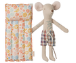 This summer set consists of a cool dad mouse and his air mattress with flower print. He wears checked beach shorts and is ready to relax in the sun on his floating bed.