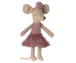 A big sister mouse dressed up like a graceful ballerina. She wears a beautiful lavender colored tutu and a beautiful headband - ready for hours of dance.
