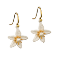 The Orange Blossom Flower Wire Earrings are made of a patinated bronze with white freshwater pearls. The earring wires are 925 silver.