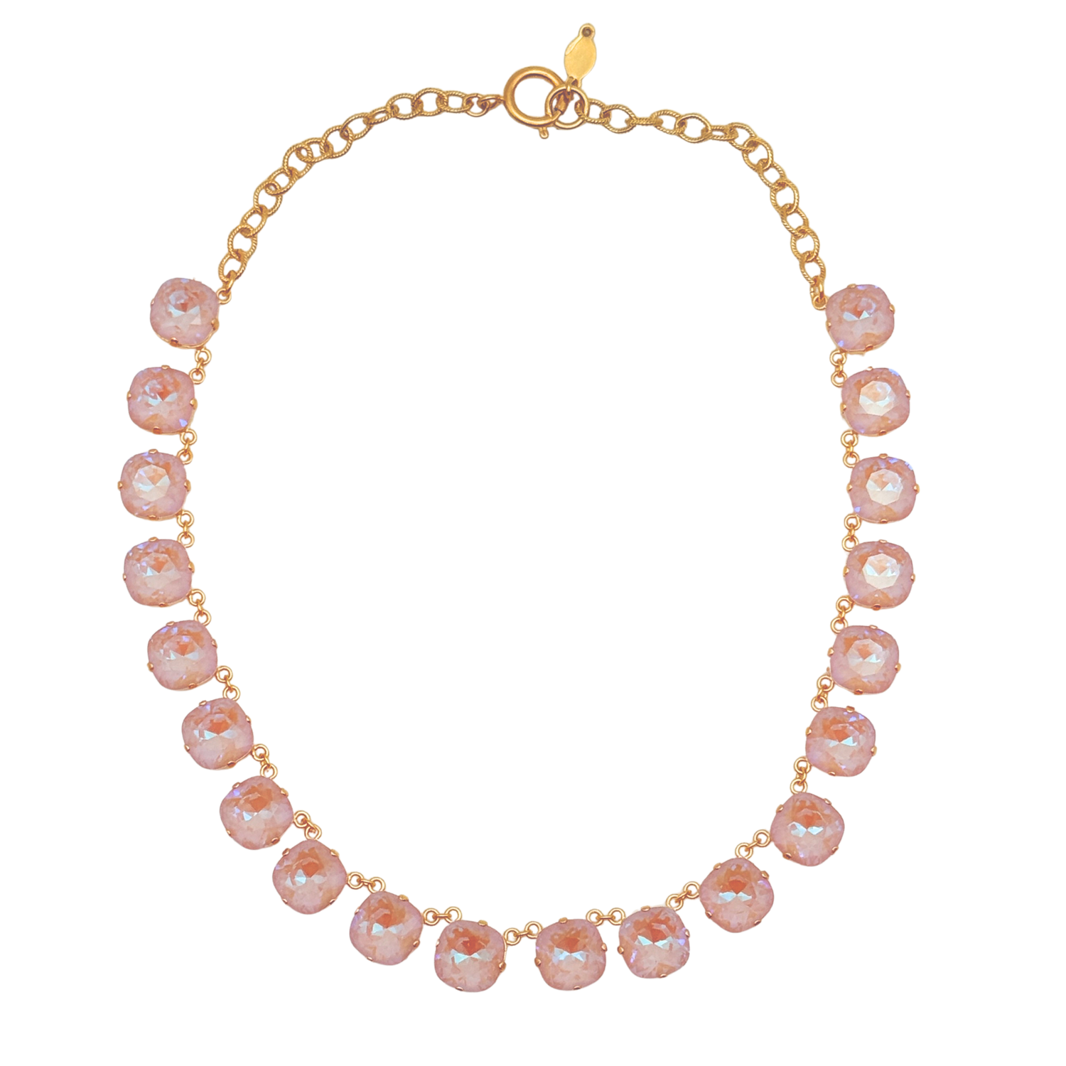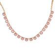 This simple yet elegant statement necklace features sparkling pink Swarovski crystals on a 14k gold-finished chain.