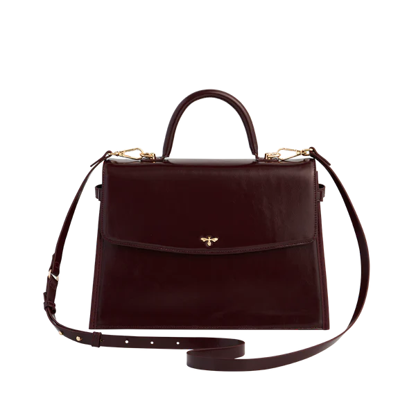The Ruby Structured Tote invites you to step into your power and sprinkle a little magic with you as you go on your merry way. The color of the season, the structured handle, shoulder strap and signature gold bee plaque conjure up joy and delight, while the plethora of compartments inside keep your valuables safe making it practical as well as charming.