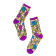 The Stained Glass Floral Sheer Socks feature purple, yellow, and blue florals along with abstract pink pieces that create the illusion of stained glass. Finished with a purple heel, toe and cuff for the perfect touch of elegance.