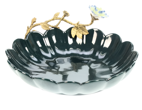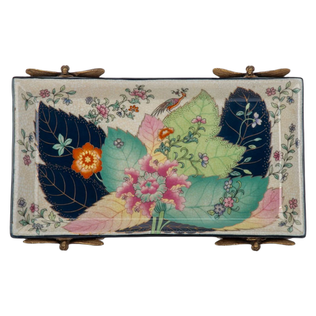 Tobacco Leaf Bronze Ormolu Dragonfly Dish