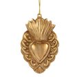 Instead of wearing your heart on your sleeve, add one to your Christmas tree with this Small Scallop Edge Flame Heart Ornament. Crafted out of metal, this golden heart ornament is framed by an intricate scallop edge, culminating in a flaming crown, for a fiery, shining complement to your holiday decor.